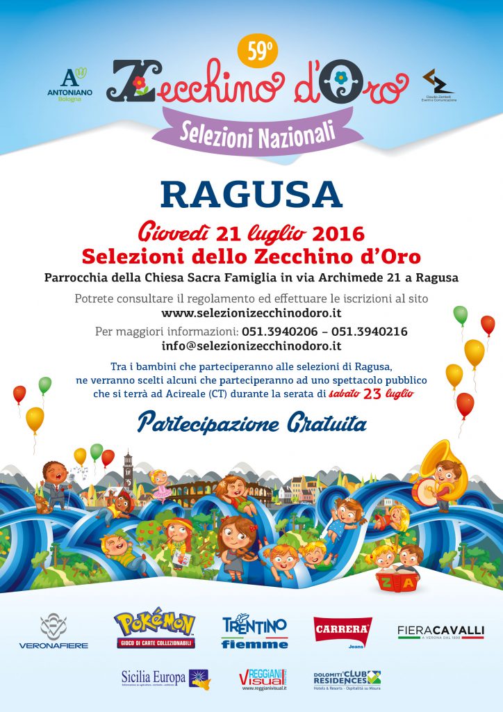 Lo Zecchino d’Oro giunge nel 2016 alla sua 59ª edizione ed il viaggio verso la diretta di novembre su Rai1 si articola da maggio ad agosto attraverso le circa 40 tappe delle Selezioni Nazionali, un vero e proprio tour organizzato dal project manager Claudio Zambelli al quale l’Antoniano di Bologna ha affidato per il decimo anno consecutivo questo importante progetto. Questa settimana è dedicata alla Sicilia con una settimana di tappe rispettivamente a Acquedolci, Aspra Bagheria, Naro, Ragusa e Acireale dove il 23 luglio è attesa la finale regionale presentata da Mister Lui.