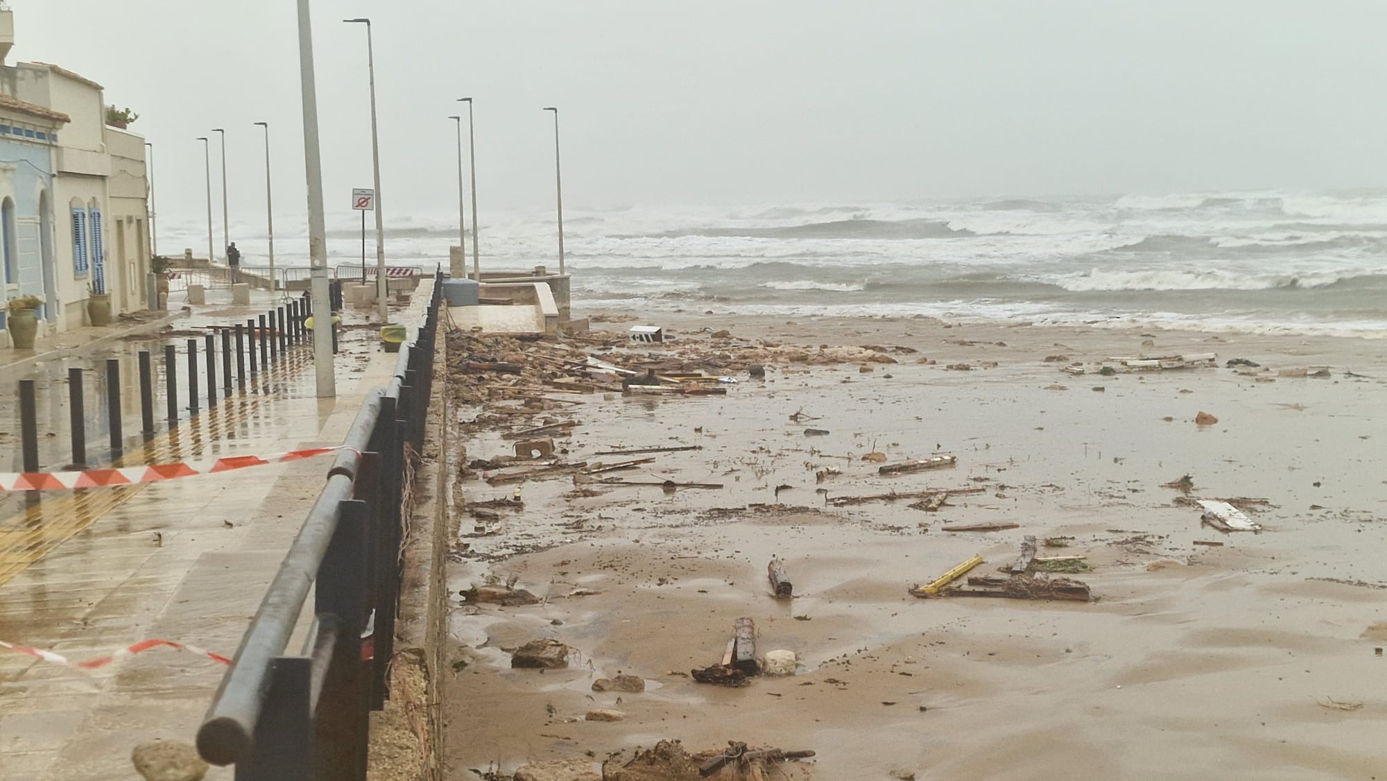Punta Secca sotto osservazione: mareggiata provoca danni e chiusure, allerta arancione per domani