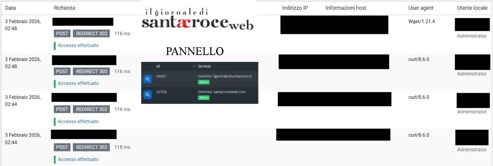 A tutela della correttezza informativa e della trasparenza verso i lettori, pubblichiamo lo screenshot tecnico delle segnalazioni di accesso anomalo registrate dal sistema. L’immagine è stata preventivamente trattata con l’oscuramento degli indirizzi IP e degli identificativi tecnici sensibili, al fine di garantire la privacy dei soggetti coinvolti ed evitare qualunque possibilità di risalire all’identità degli autori dei tentativi di intrusione.