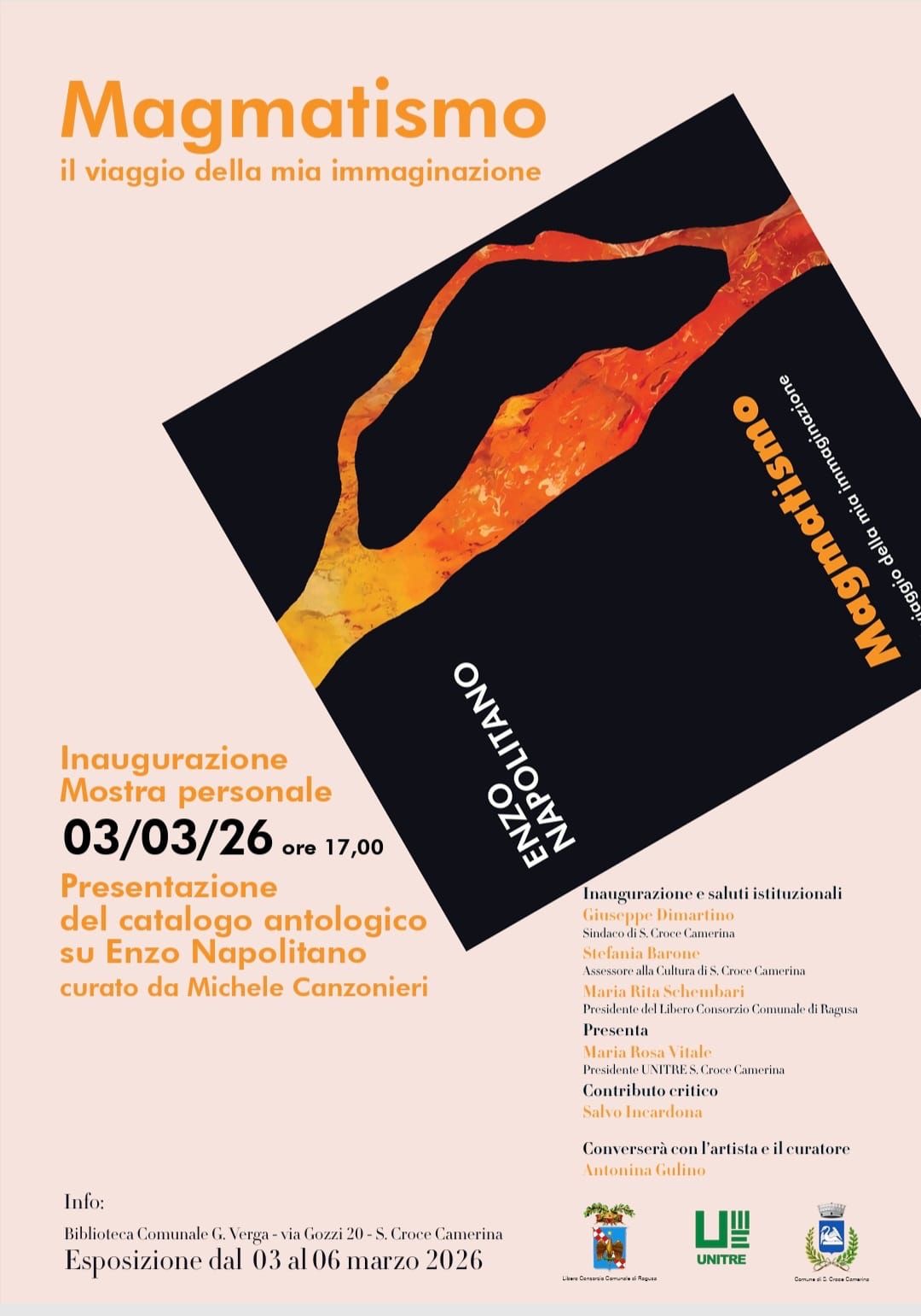 Un’esplosione di energia creativa e una riflessione profonda sul percorso di uno dei protagonisti della scena artistica locale: è questo il cuore di “Magmatismo – il viaggio della mia immaginazione”, la mostra personale di Enzo Napolitano che aprirà i battenti il prossimo 3 marzo nei locali della Biblioteca Comunale G. Verga.